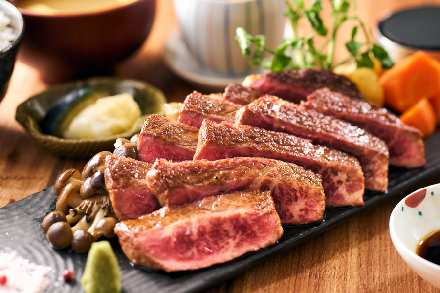 夕食のメイン料理を和牛ステーキにランクアップ出来ます。(冬期のみ/3日前までにご予約下さい)